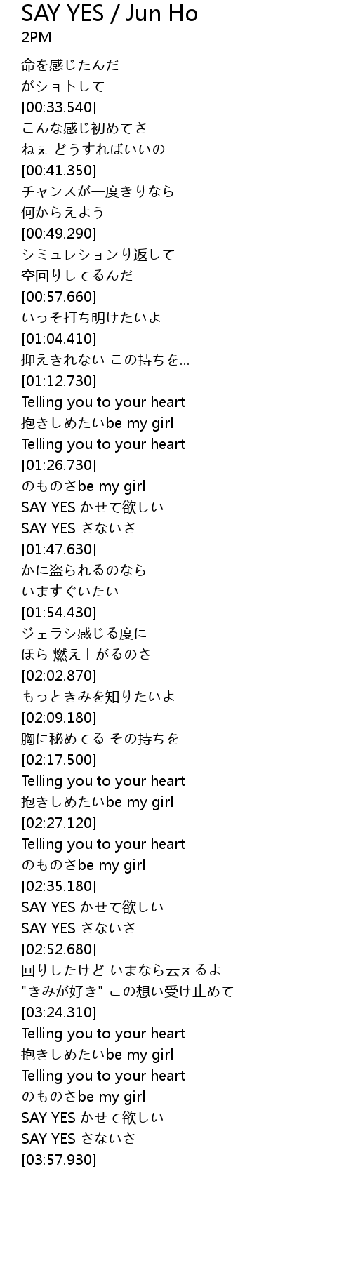| [03:17.680] | "きみが好き" この想い受け止めて |