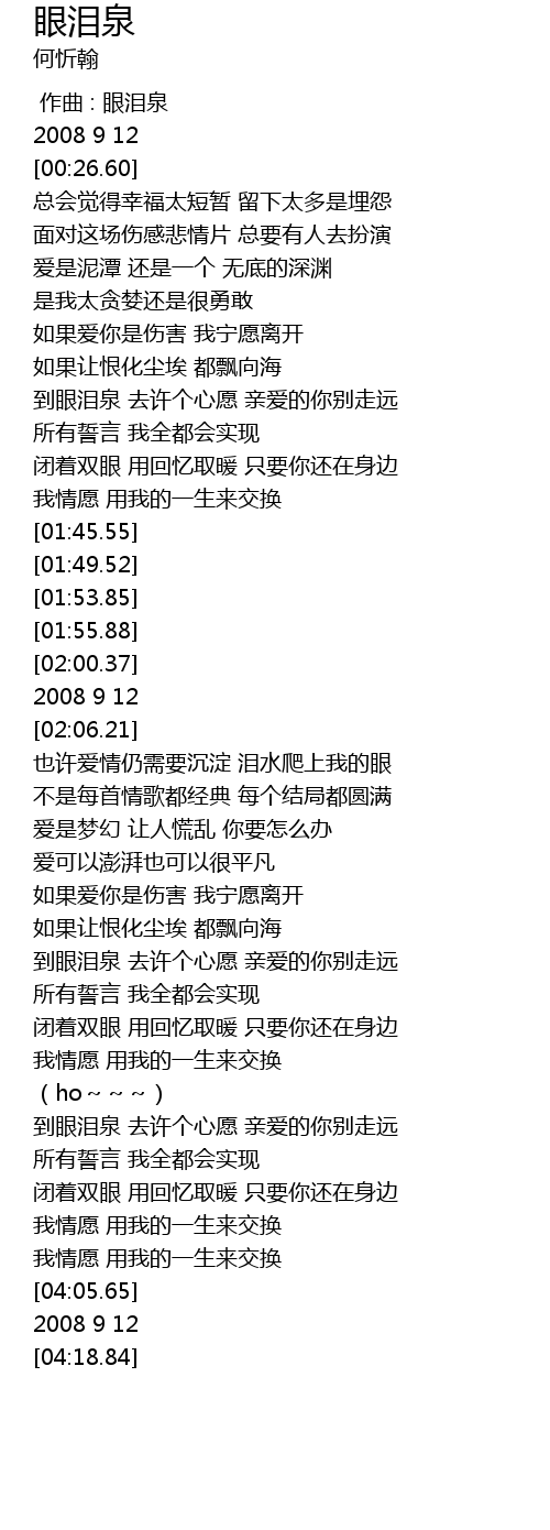 | [03:29.50] | 到眼泪泉 去许个心愿 亲爱的你别走远 |