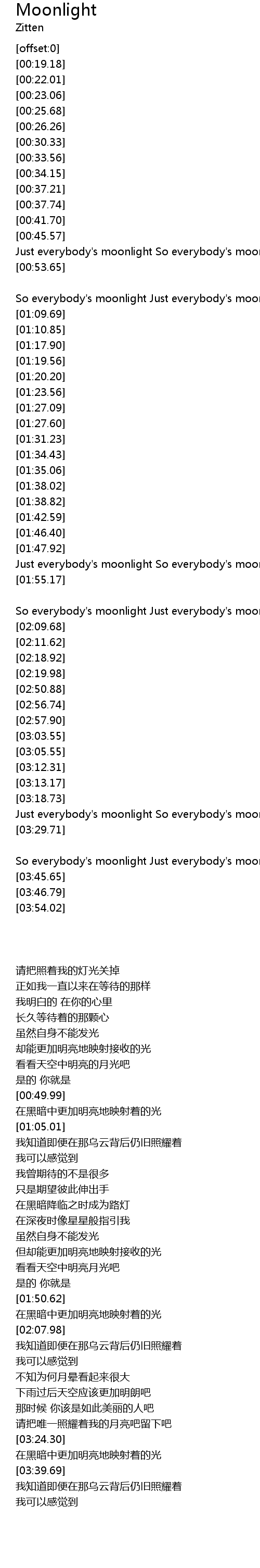[03:24.10] Just everybody's moonlight So everybody's moonlight