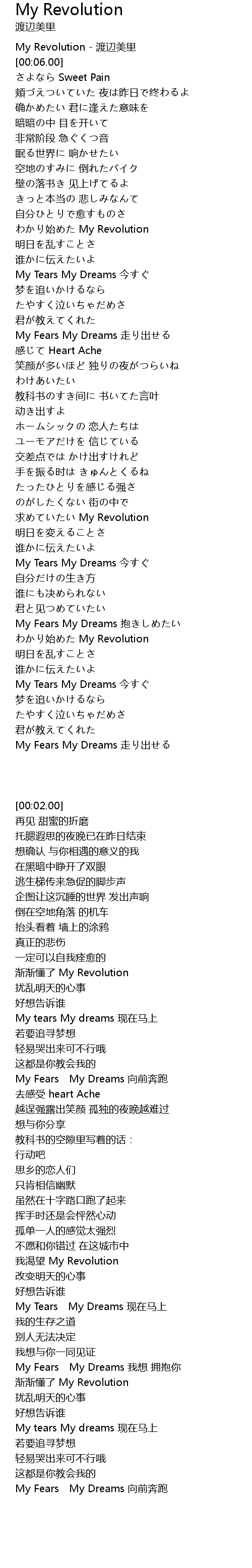 | [00:02.00] | My Revolution du bian mei li |
