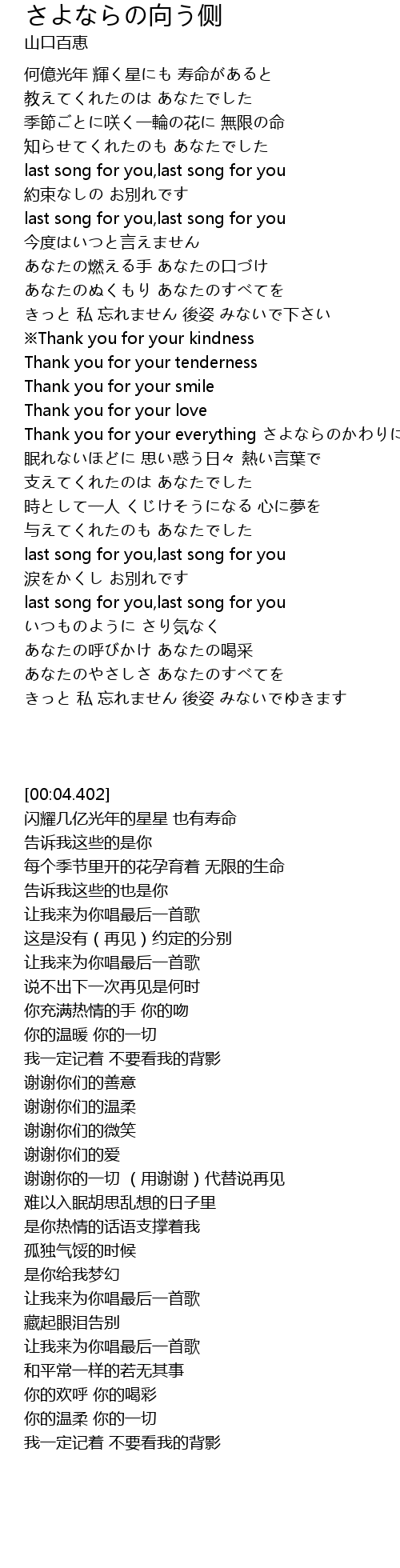 | [02:22.500] | Thank you for your everything さよならのかわりに※ |