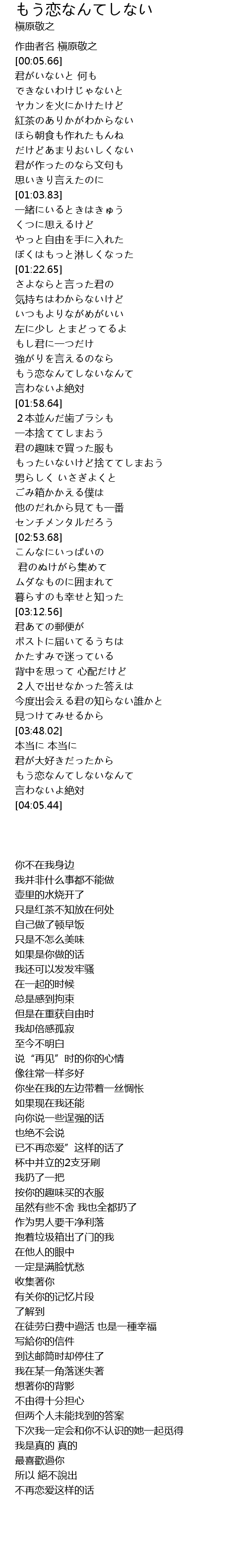 | [01:17.56] | ぼくはもっと淋しくなった |
