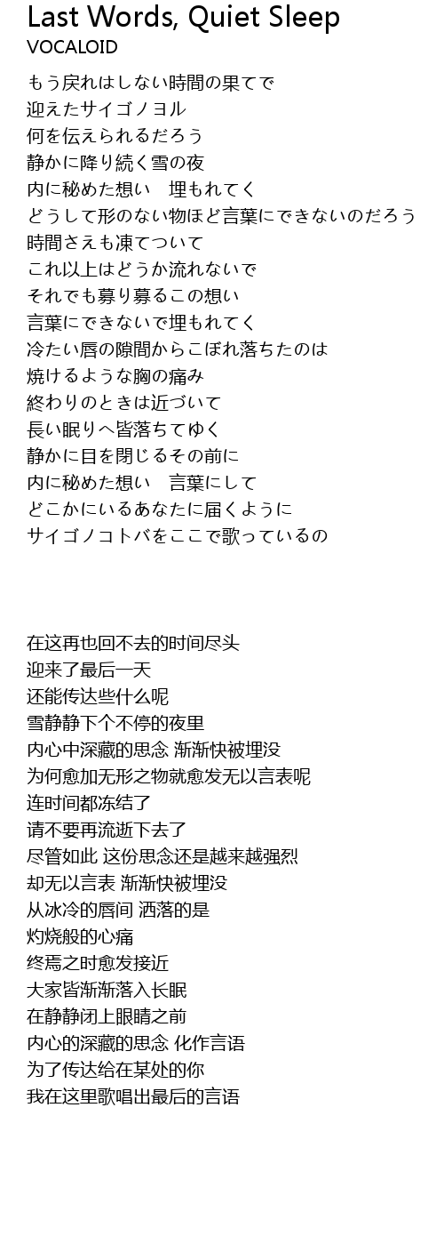 Last Words, Quiet Sleep Lyrics