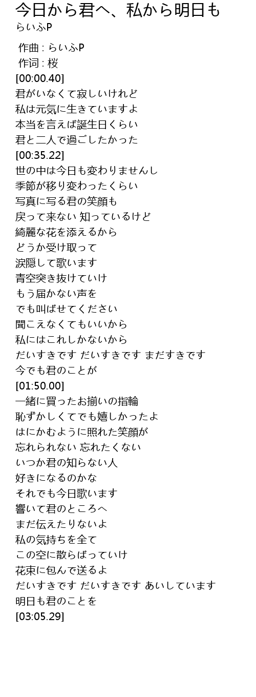 | [03:00.47] | 明日も君のことを |