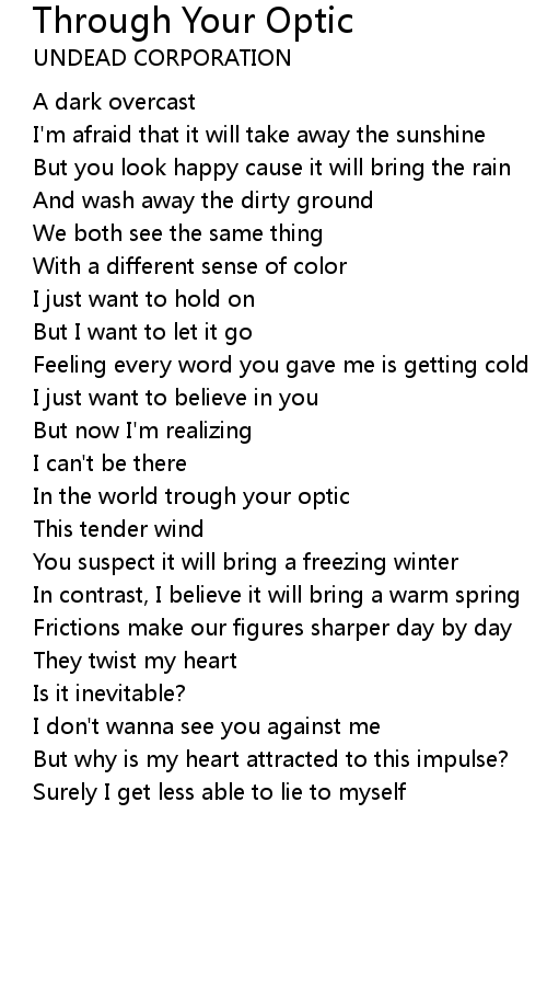 In the world trough your optic |