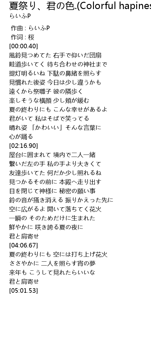 | [01:22.04] | 遠くから祭囃子 彼の隣歩く |