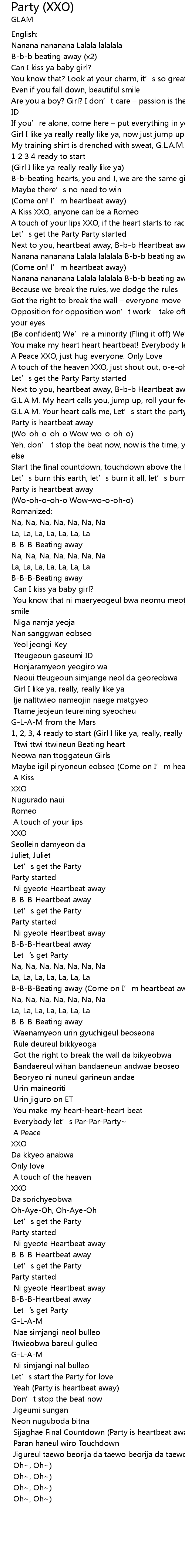 | G. L. A. M. Your heart calls me, Let' s start the party for love | |