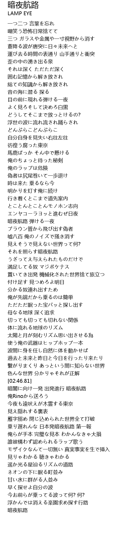 | [02:55.74] | 暗闇に向け一発 出発進行 暗夜航路 |