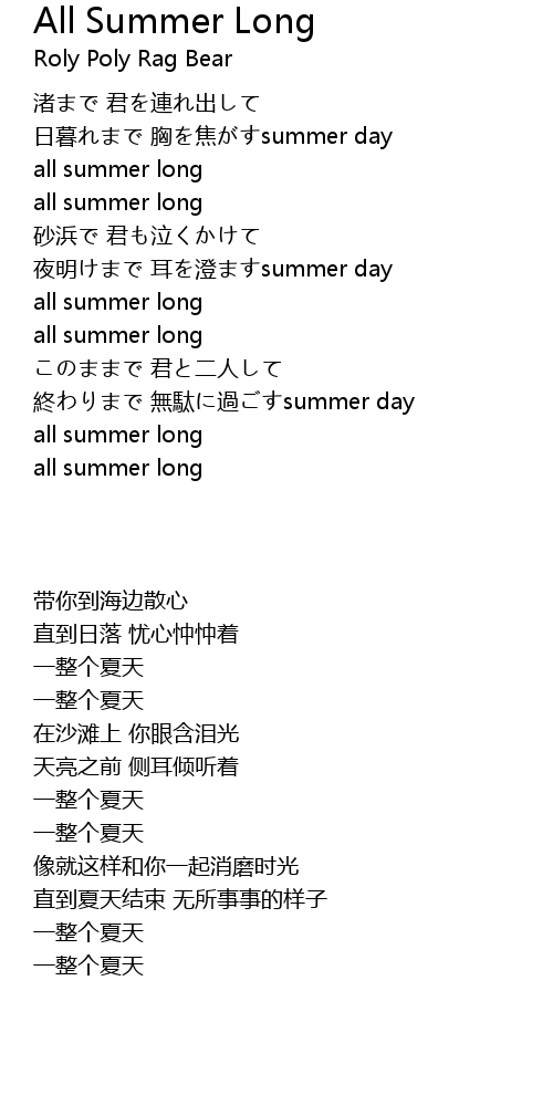 | [01:47.75] | zhōng wú tuó guò summer day |