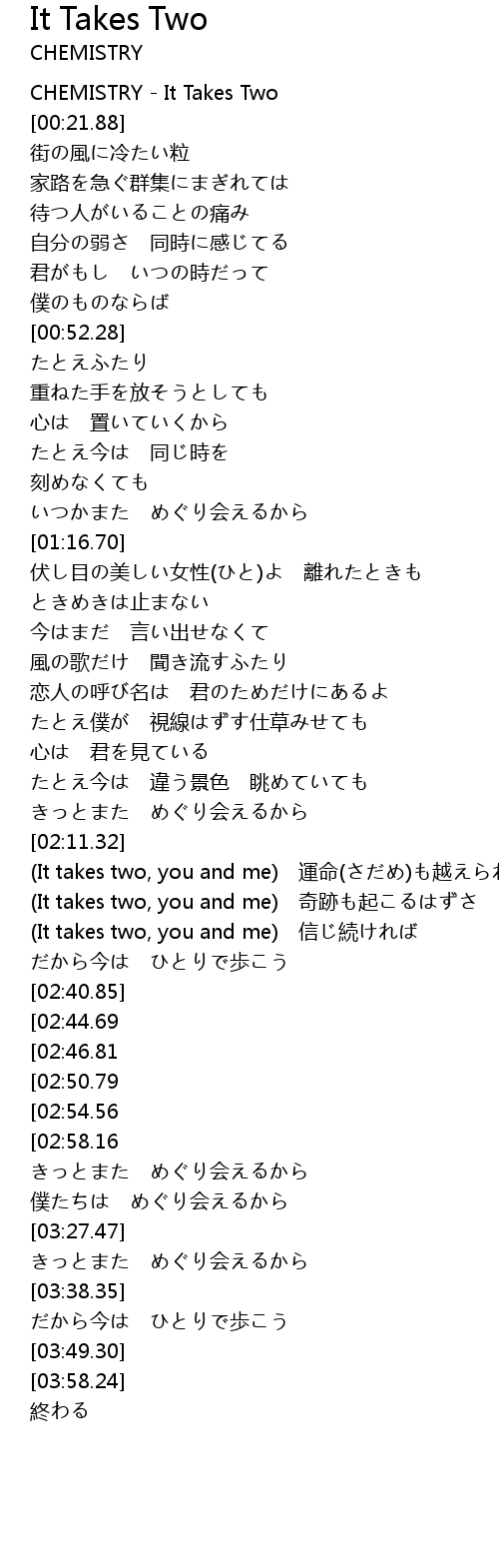 | [00:00.00] | CHEMISTRY - It Takes Two |