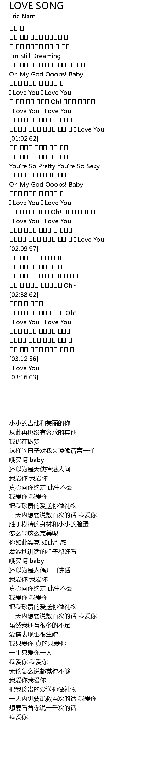 | [02:03.23] | 하루에도 수백번 해주고 싶은 말 I Love You |