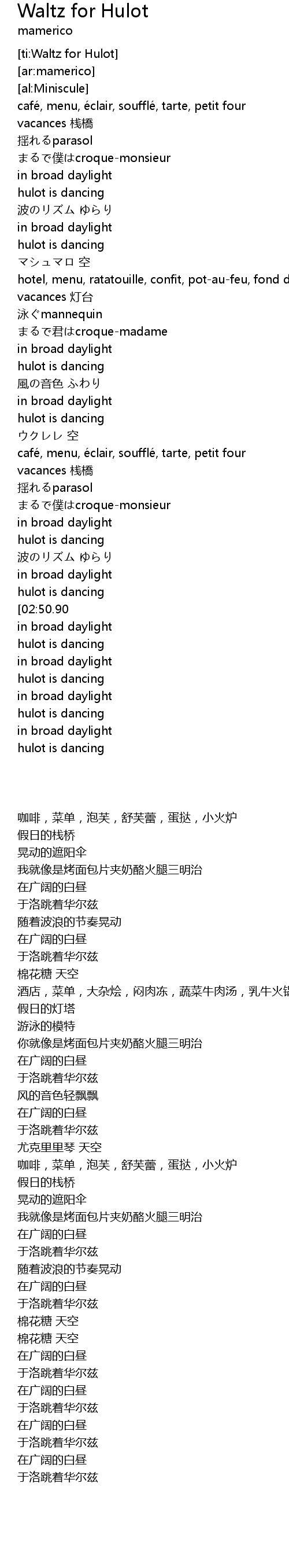 | [ti:Waltz for Hulot] | |
