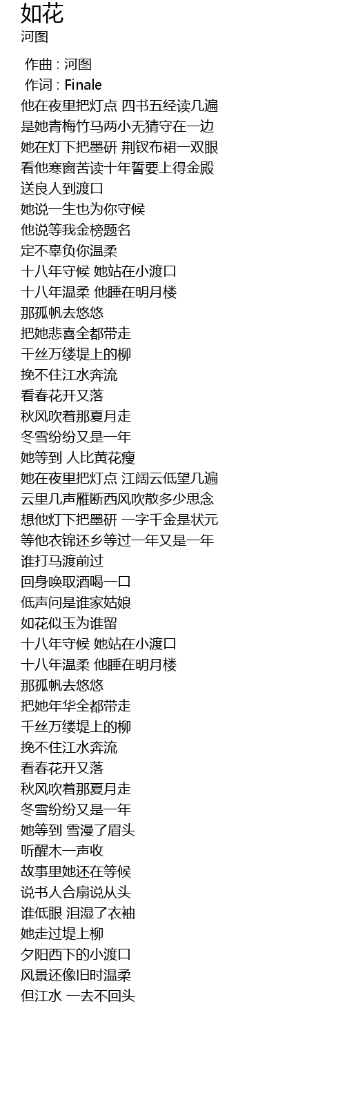 | [02:42.340] | 十八年守候 她站在小渡口 |