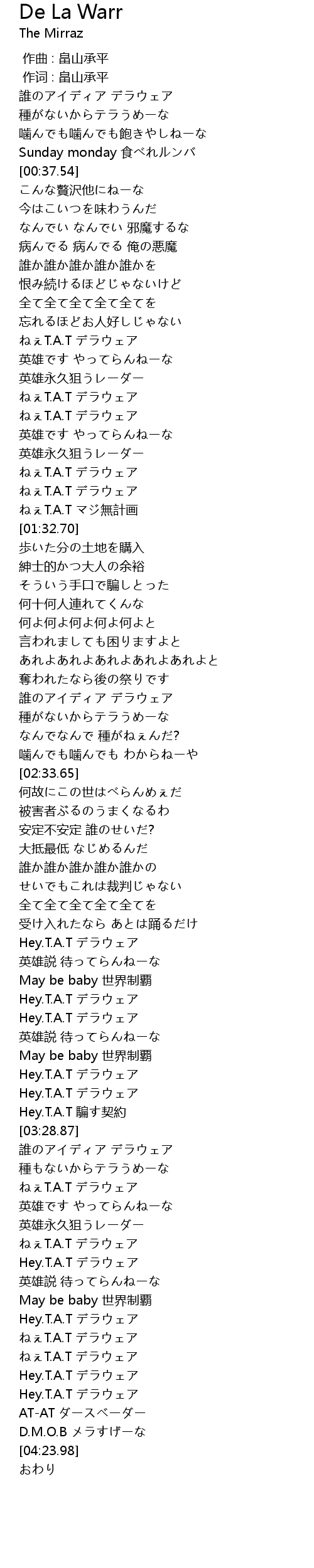 | [03:19.83] | Hey.T.A.T デラウェア |