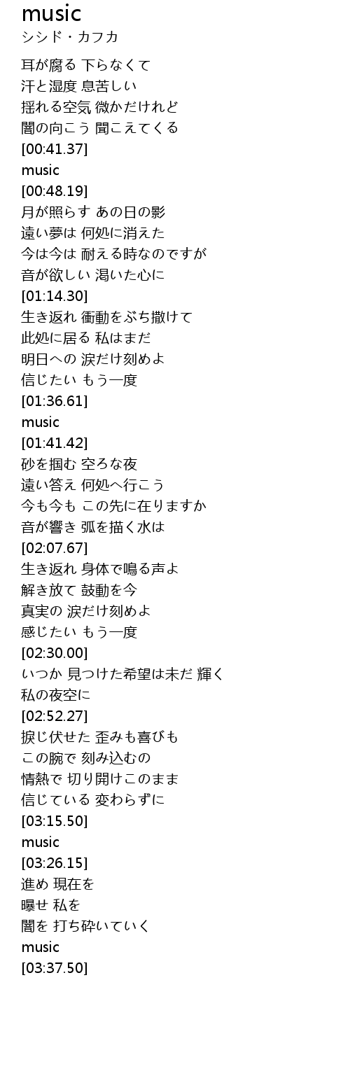 | [00:37.19] | 闇の向こう 聞こえてくる |