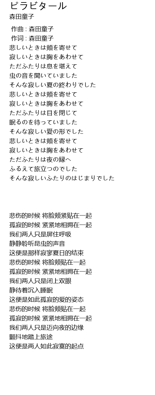| [00:00.00] | 作曲 : 森田童子 |