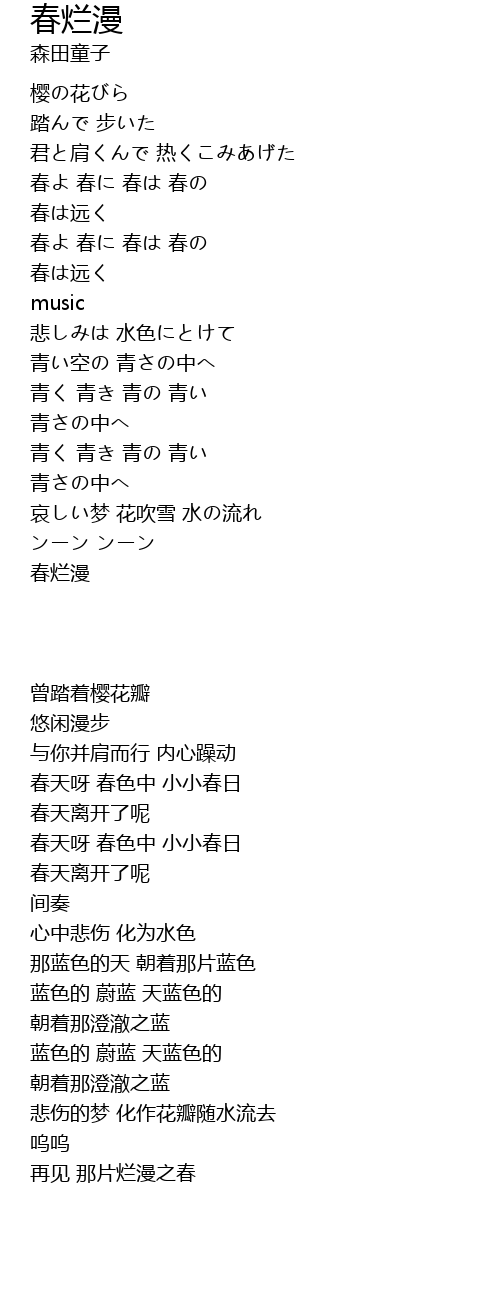 | [02:03.65] | 哀しい梦 花吹雪 水の流れ |