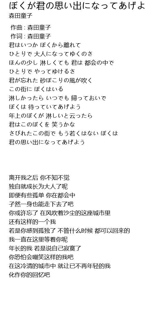 | [00:01.00] | 作词 : 森田童子 |