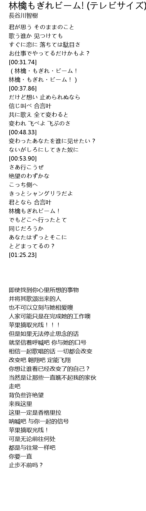 | [01:10.85] | 林檎もぎれビーム! |