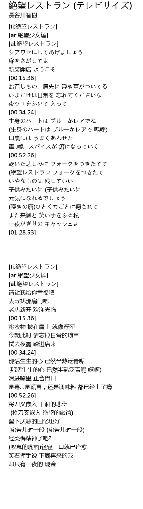 | [ti:絶望レストラン] | |