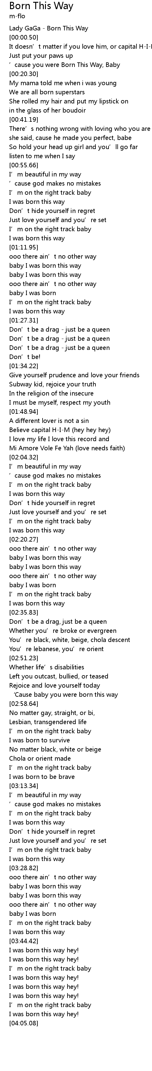 | [03:19.84] | I was born this way |