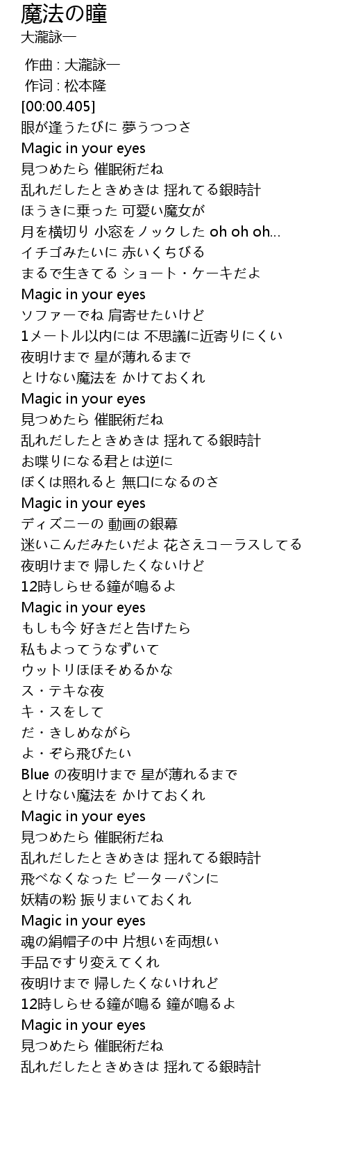 | Song | 魔法の瞳 |