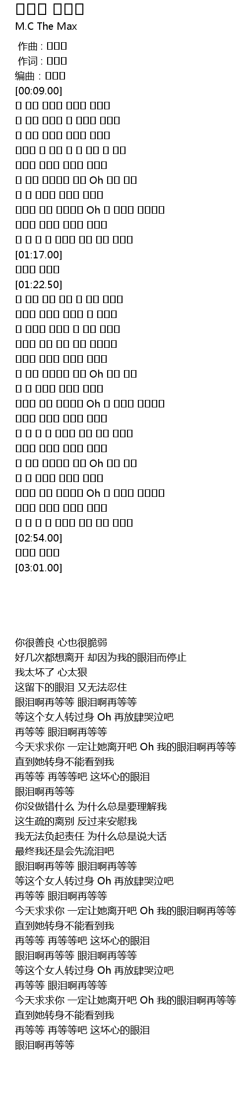 | [02:22.75] | 눈물아 기다려 눈물아 기다려 |