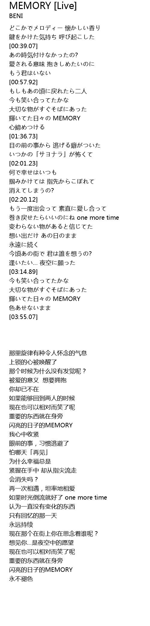 | [03:43.52] | 輝いてた日々の MEMORY |