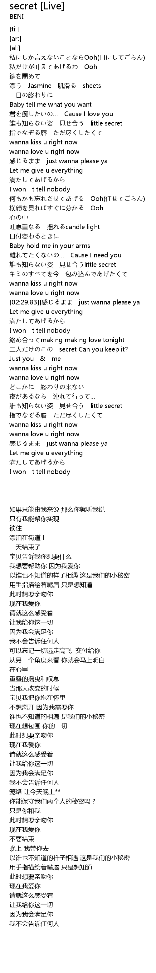 | [02:50.38] | er ren secret Can you keep it? |