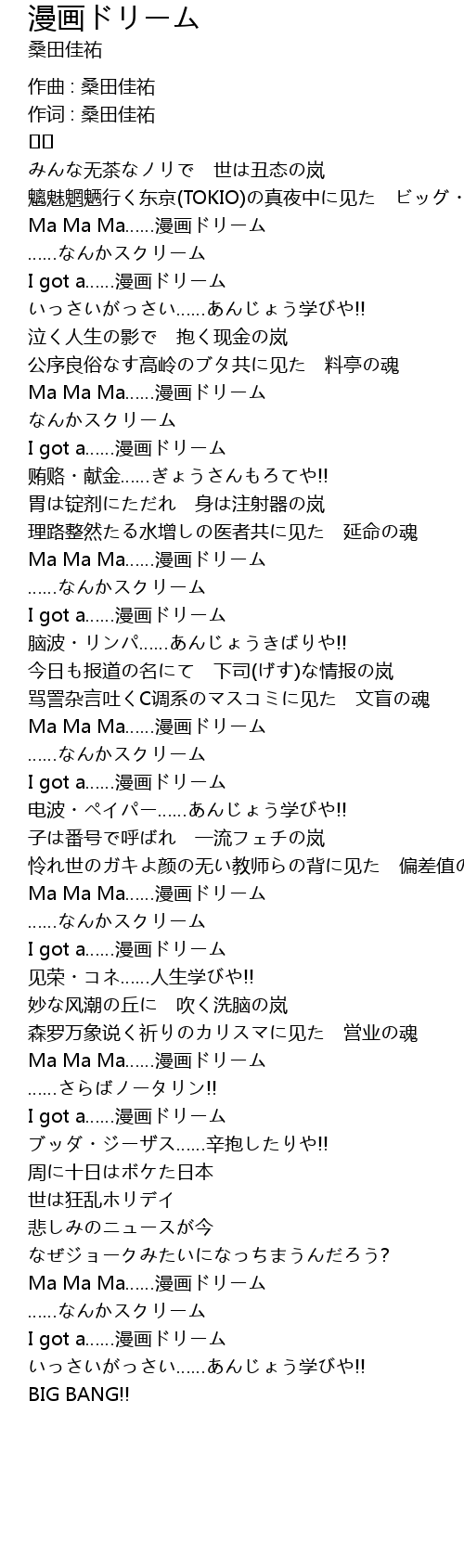 | Song | 漫画ドリーム |