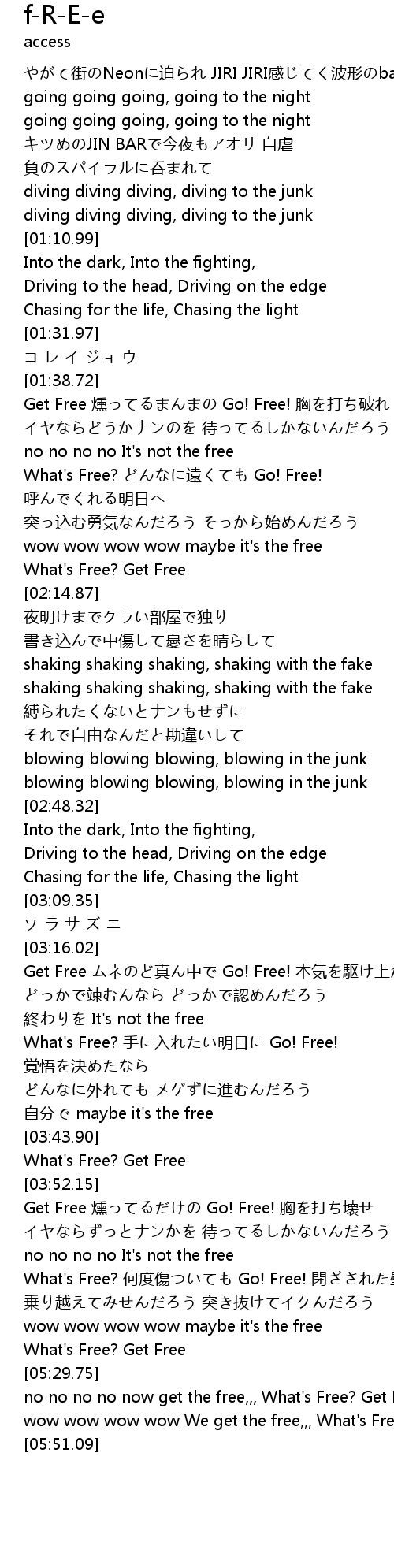 | [03:30.17] | What's Free? 手に入れたい明日に Go! Free! 覚悟を決めたなら |