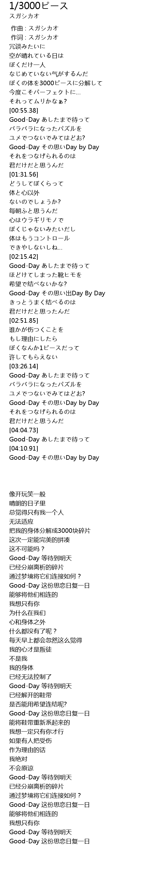 | [02:34.71] | GoodDay sī chū Day By Day |