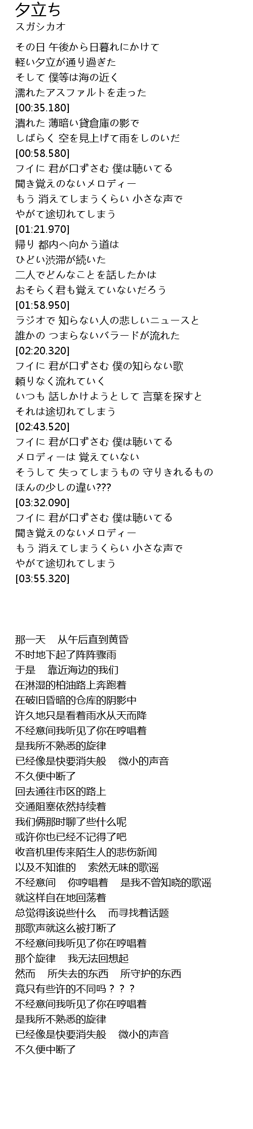 | [02:21.460] | フイに 君が口ずさむ 僕の知らない歌 |