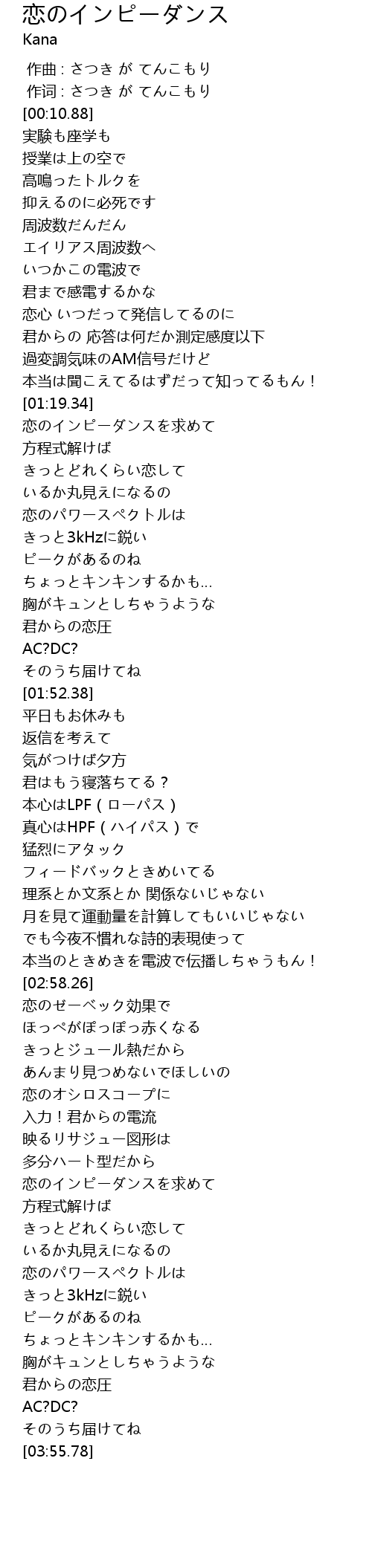 | [01:19.51] | 恋のインピーダンスを求めて |