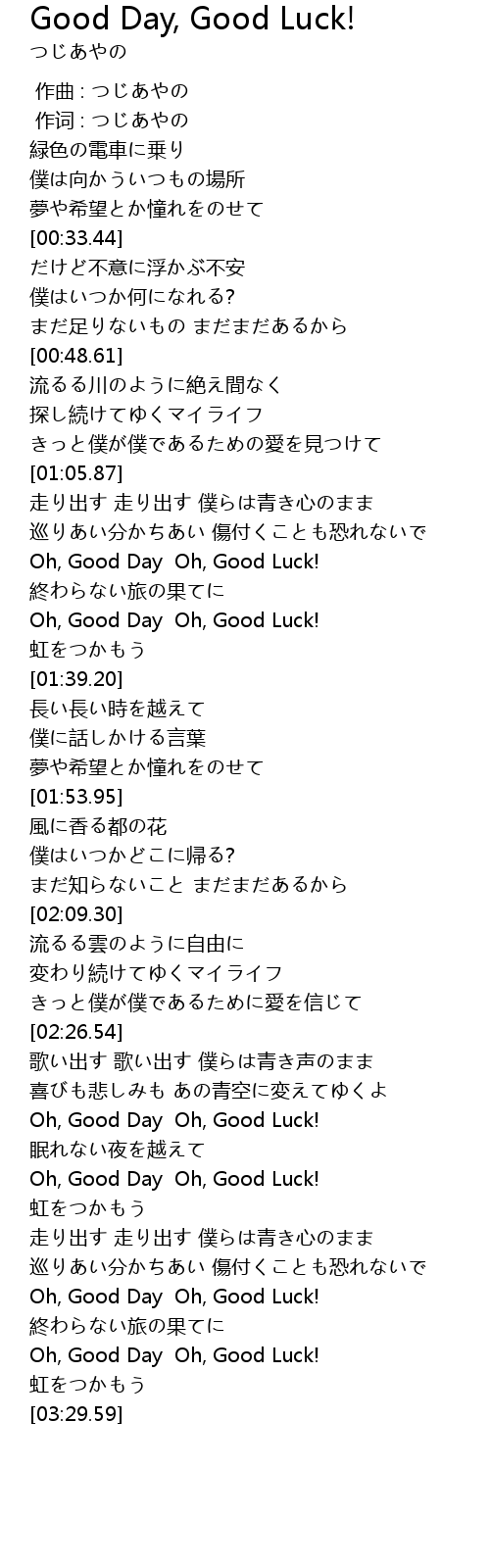 | [01:21.67] | Oh, Good Day Oh, Good Luck! |