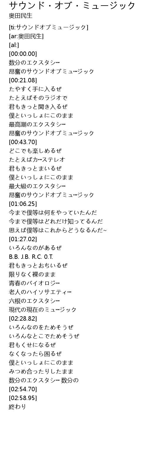 | [00:38.65] | 昂奮のサウンドオブミュ┅ジック |
