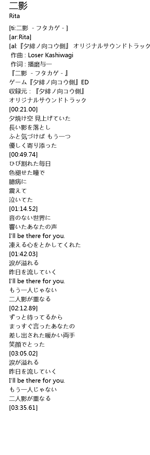 | [ti:二影 -フタカゲ-] | |