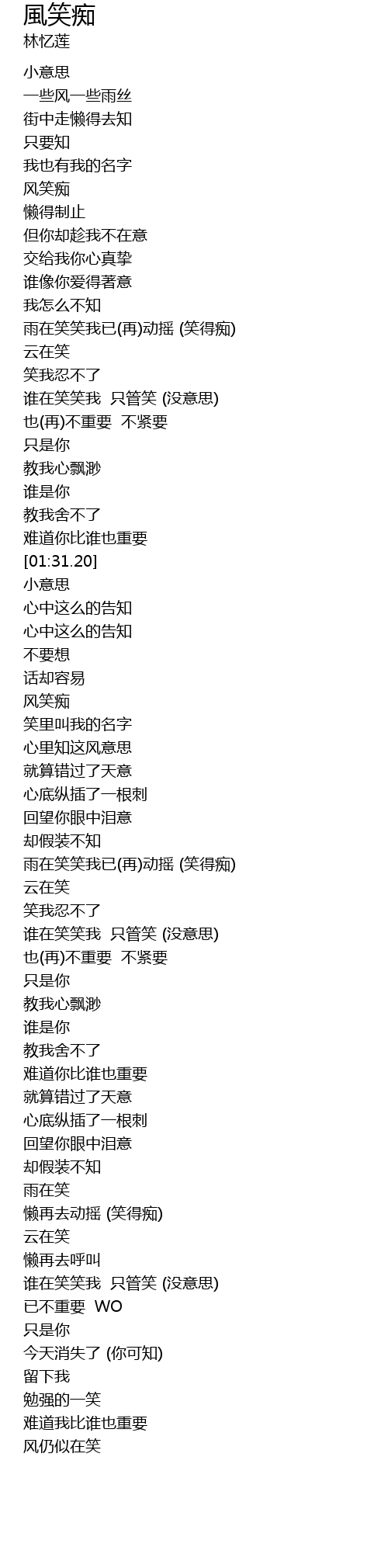 | [03:19.14] | 懒再去动摇 (笑得痴) |