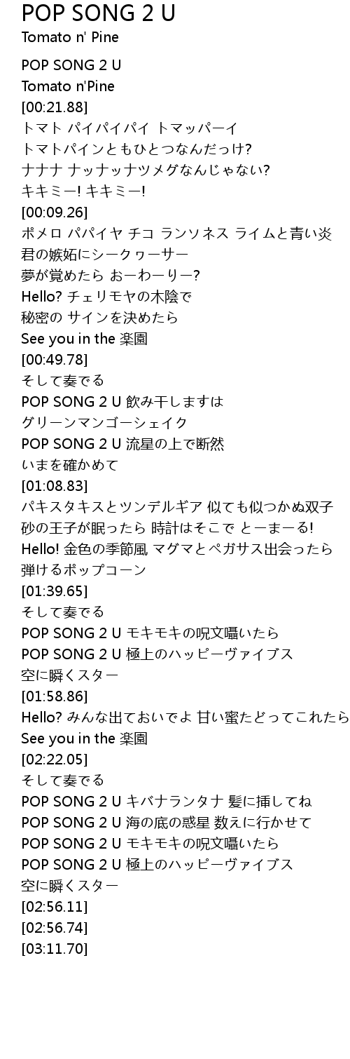 | [02:31.40] | POP SONG 2 U 海の底の惑星 数えに行かせて |