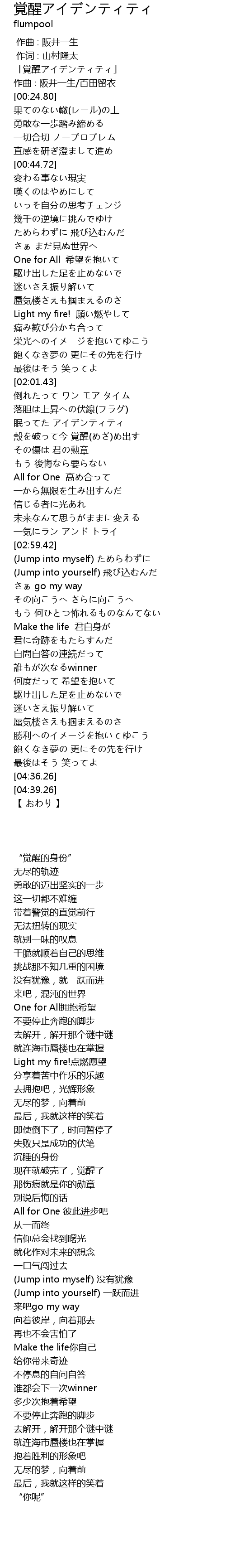 | [00:01.80] | 「覚醒アイデンティティ」 |