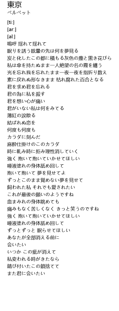 | [02:58.50] | ずっとずっと 眠らせてほしい |