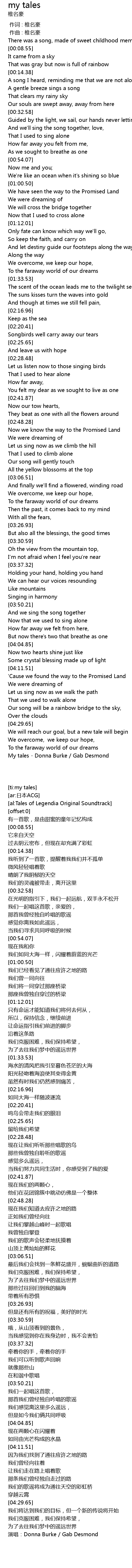 | [04:46.40] | My tales Donna Burke Gab Desmond |