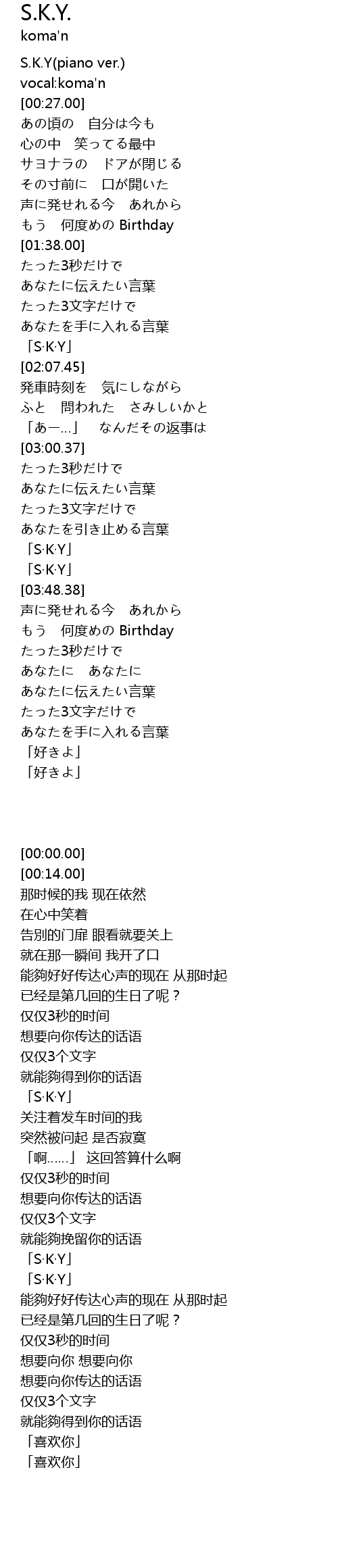 「S·K·Y」 |