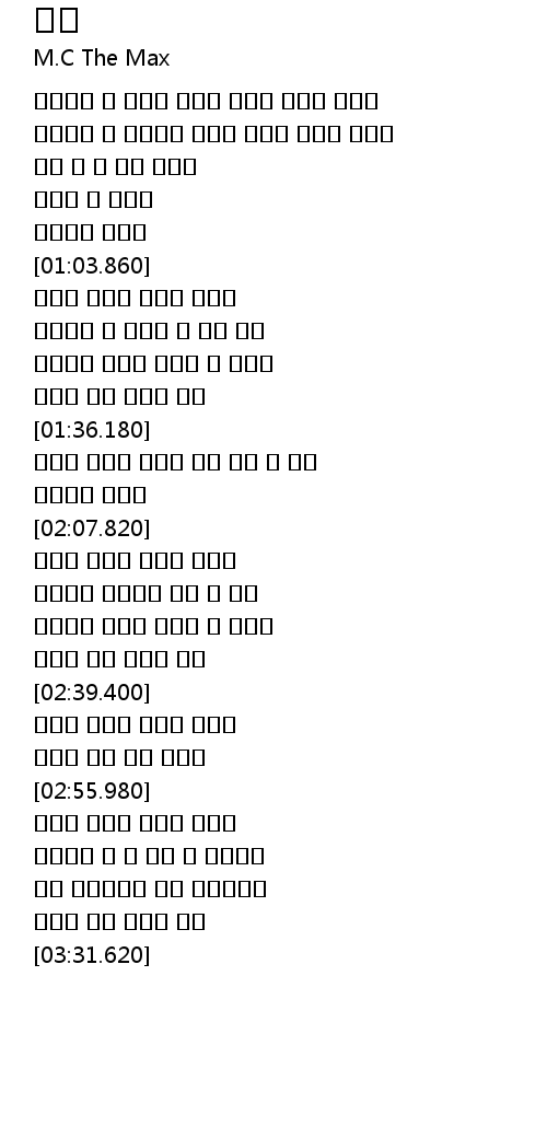 | [02:56.190] | 사랑해 사랑해 너만을 사랑해 |