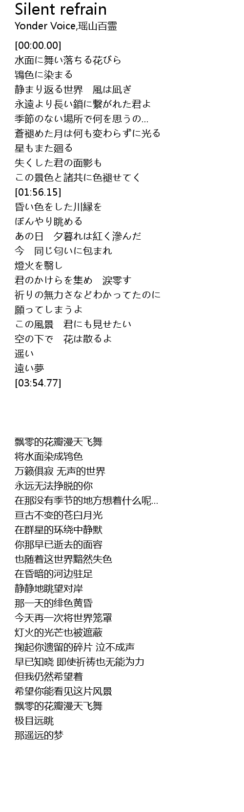 | [00:24.49] | 水面に舞い落ちる花びら |