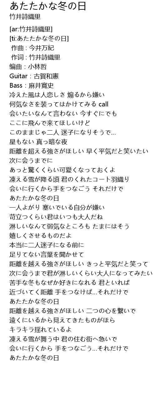 | [ti:あたたかな冬の日] | |