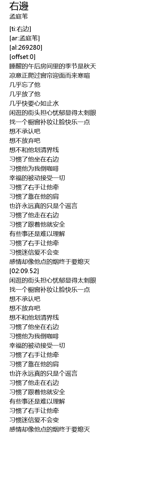 | [02:59.83] | xí guàn le tā zuò zài yòu biān |