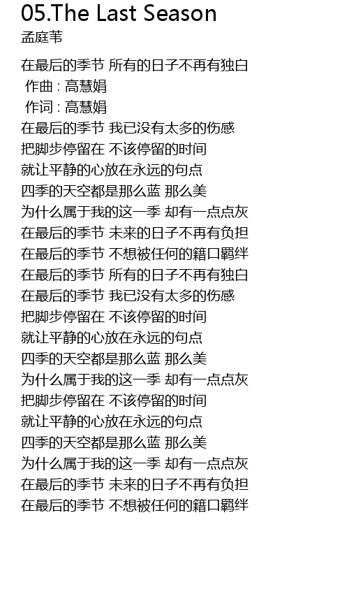 | [01:41.650] | 在最后的季节 所有的日子不再有独白 |