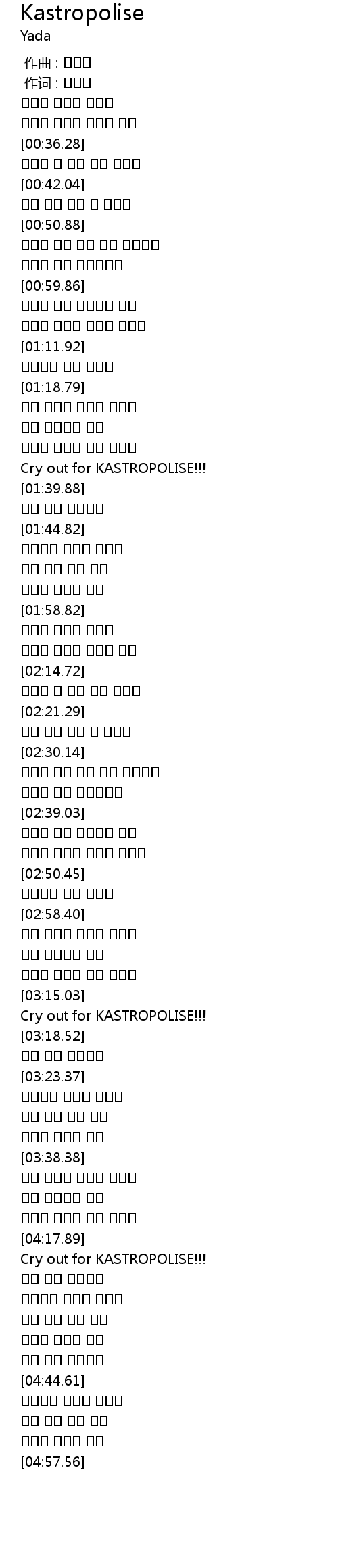 | [01:37.68] | Cry out for KASTROPOLISE!!! |