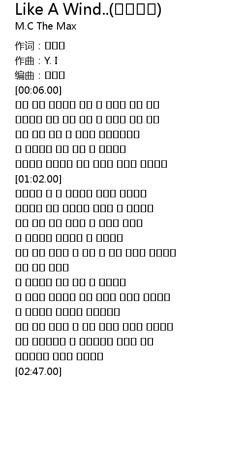 | [00:41.14] | 난 추억속을 달릴 거야 저 바람처럼 |